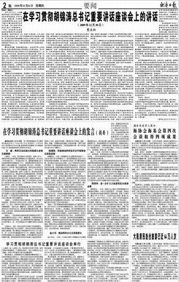学习贯彻胡锦涛总书记重要讲话座谈会举行