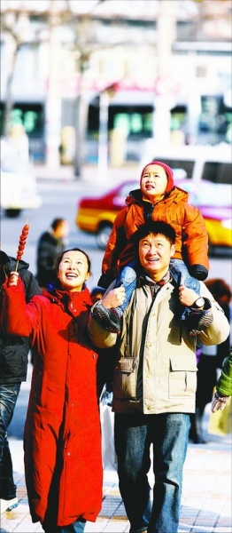 2010年1月1日上午,北京蓝岛大厦前,刚从国外回京休假的瞿笛横(右)一家特意走上街头,看北京的巨大变化。