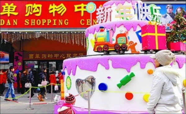 图3:2010年1月1日上午,北京西单商业街,节日气氛热烈。虽然天气寒冷,但来此购物的顾客川流不息。