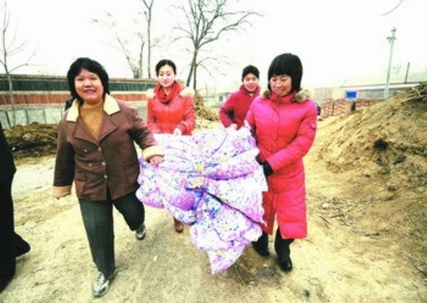 河北省三河市元旦期间在全市开展了为低保户、五保户和困难群众“送温暖,献爱心”活动。这是当地民政干部去该市燕郊镇西柳河屯村赠送棉被等慰问物品。 本报记者 李景录摄