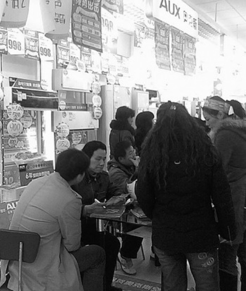 消费者在湖北武汉唐家墩工贸家电连锁店奥克斯空调销售区选购空调。在“家电下乡”等政策的带动下,新年伊始,奥克斯、海尔等企业纷纷推出以“绿色无氟”、“变频技术”概念为主打的空调新品,抢占市场。 崔 娜摄