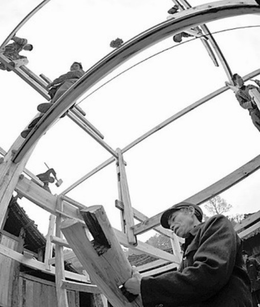 贵州肇兴侗寨内的侗族同胞正在建设新居(2009年12月21日摄)。2009年,贵广高速铁路、蓉厦高速公路的陆续开工,让深山侗寨的人们看到了新的发展机遇,纷纷出资修建新居,发展“民居旅店”抢抓旅游商机。据悉,2009年肇兴侗寨共有80余户侗族同胞建起了新房,是历年来建房数量最多的一年。 新华社记者 欧东衢摄