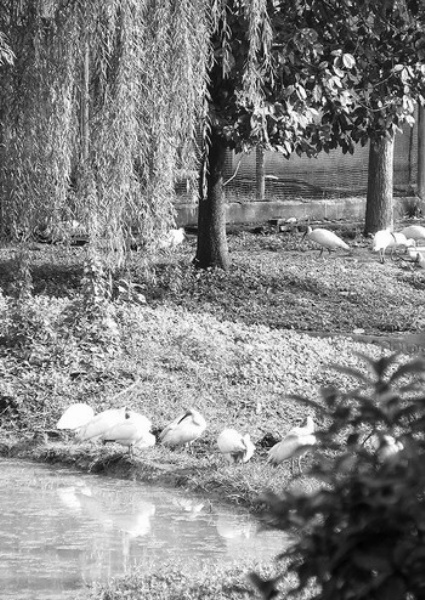 记者来到洋县朱 自然保护区时,正是上午十点多钟,空气清新,阳光明媚。一群朱 正悠闲地在圈养区内的浅水沼泽里觅食。红嘴尖,弯勾嘴,阳光照耀下的翅膀似乎变成透明的,糅合了橙黄色和粉红色,非常漂亮。工作人员介绍说,朱 的年龄越大,羽毛的颜色就越显粉红。目前,洋县有1000多只朱 。