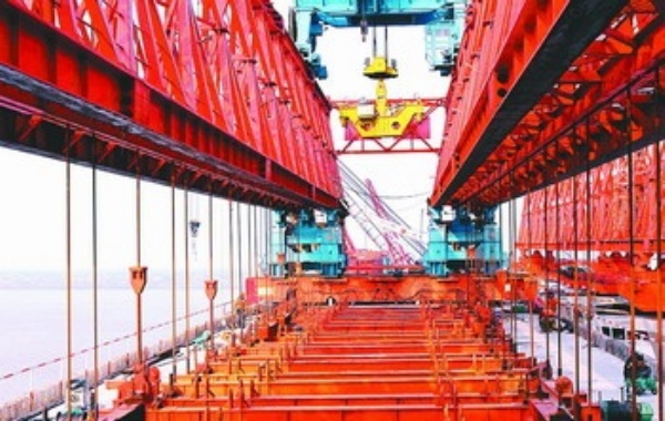1月7日,工人在崇启长江公路大桥施工现场忙碌。崇启长江公路大桥是上海至西安国家高速公路的重要组成部分,项目南起上海崇明岛陈家镇,与在建的上海长江越江通道相接,跨江大桥长约7.2公里。