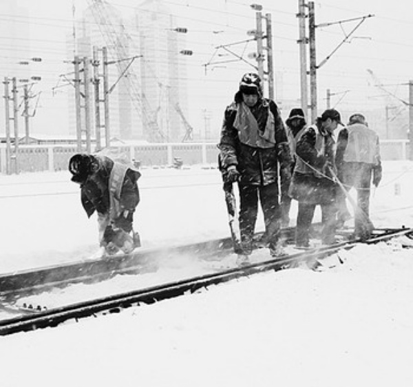 1月3日,铁路职工在天津站清扫道岔积雪。 当日,华北地区出现强降雪天气。天津铁路部门各单位启动保安全、保畅通紧急预案,确保途经和始发列车安全正点。 锦 旭摄(新华社发)
