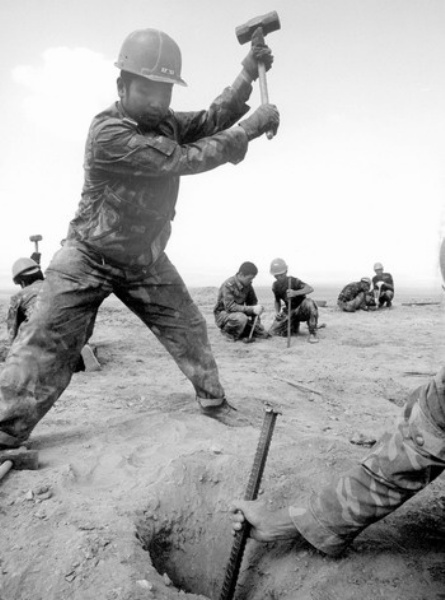 图3:兰州军区部队正开凿光缆管沟。 李 翔摄