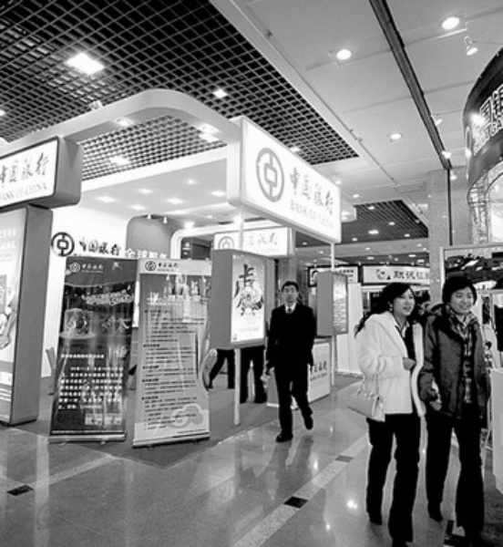 日前在沈阳市举行的金融博览会上,琳琅满目的金融产品吸引着消费者的目光。 张文魁摄(新华社发)
