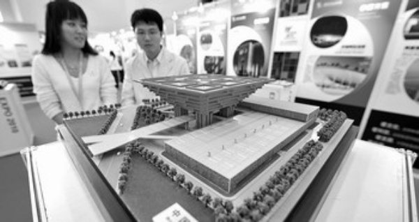 2009年12月4日,“走进世博会”展览在海口开幕,观众在参观中国馆模型。 新华社记者 郭 程摄