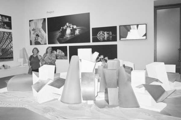 古根海姆博物馆历年馆藏精品展日前在阿联酋首都阿布扎比举办。根据已经签署的合作协议,阿联酋政府正与古根海姆基金会共同致力于在阿布扎比萨迪雅特岛建造中东地区首座世界级艺术博物馆。图为参观者在欣赏由著名建筑设计大师弗兰克·盖里主持规划的阿布扎比古根海姆现代艺术博物馆全景模型。