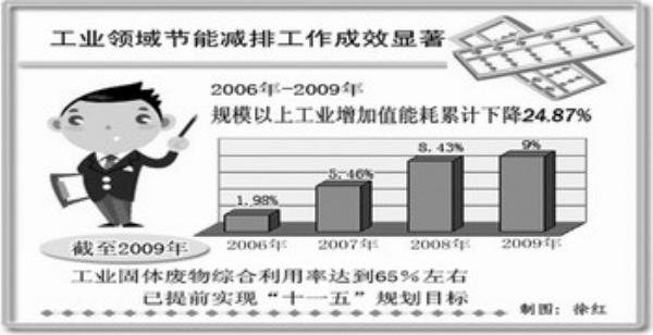 “‘十一五’前四年,我国万元工业增加值能耗已累计下降24%左右,这也为实现‘十一五’节能减排目标奠定了良好基础。”周长益说。