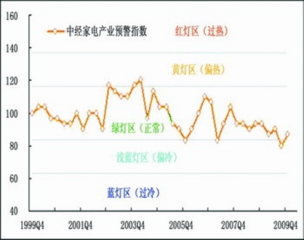 预警:2009年四季度,中经家电产业预警指数为86.7点,与上季度相比上升了6.7点,重新回到“绿灯区”。