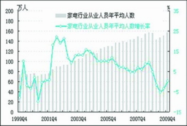与上季度相比,2009年四季度家电行业生产、销售收入、利润、税金、投资和出厂价格等主要经济指标呈现全面增长态势。其中,家电行业生产合成指数比上季度提升0.9点,已是连续3个季度保持回升;家电行业销售收入同比增速较上季度提高9.4个百分点;产成品资金占用同比增速由负转正;前三季度一直处于低迷状态的家电出口在第四季度也出现止跌回升,降幅继续收窄的趋势。