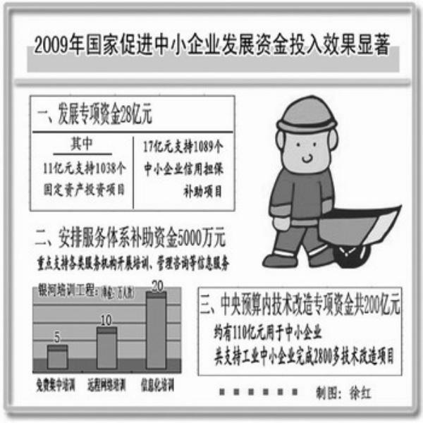 据辽宁省中小企业厅厅长吴野松介绍,2009年辽宁集中了4800万元的省中小企业发展资金,重点支持了成长型中小企业的200个发展项目;省技改资金的56.5%,用于了成长型中小企业技术改造贷款贴息;国家支持的1亿元中小企业技术改造资金,也都集中用在了成长型中小企业的130个技术改造项目;工业和信息化部支持辽宁的1亿元中小企业发展资金,支持了60家成长型中小企业。同时,政府组织银企对接,协调担保机构共为成长型中小企业落实贷款近300亿元。