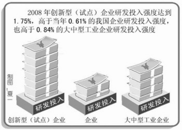 中科院高技术局局长田静曾有过一个形象的比喻:如果企业因为受到危机影响,停止了创新投入,开始“吃老本儿”,就相当于农民在吃种子粮,最终会将眼前的困难变成长远的失利。根据国际经验,技术研发投入占销售额比例在1%以下的企业是很难长期生存的,比例为2%左右的企业仅可以简单维持,只有比例达到5%的企业才有竞争力。从这个角度讲,不断加大对技术创新的投入,创新能力的提高才有保障,才能提高企业的核心竞争力。而众多的创新型企业越是在困难的时候越舍得在创新上投入,这些企业2009年的研发投入占销售收入的比例均达到或接近5%,这也成为它们核心竞争力的保障。