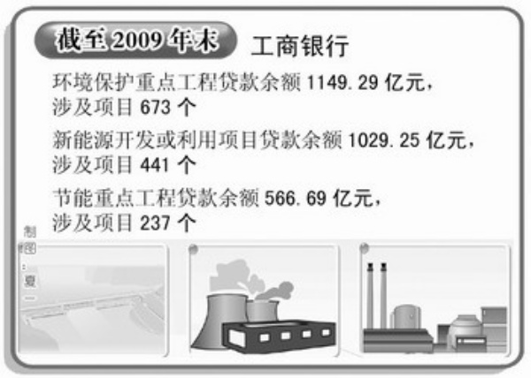 2009年以来,工商银行直接支持的污水处理、固体废物处理、燃煤机组烟气脱硫、水环境综合整治、生态综合保护工程等节能环保项目达2099个,对节能环保类项目贷款余额超过4000亿元。该行贷款企业中属于环保部门认定的环保友好与环保合格的企业占98%,涉及贷款余额占99%,其余不到2%的有贷企业尚在环保达标评价之中。