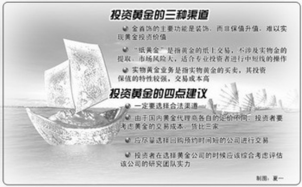 总的来说,黄金投资的渠道主要有实物黄金、“纸黄金”和金饰品三种。