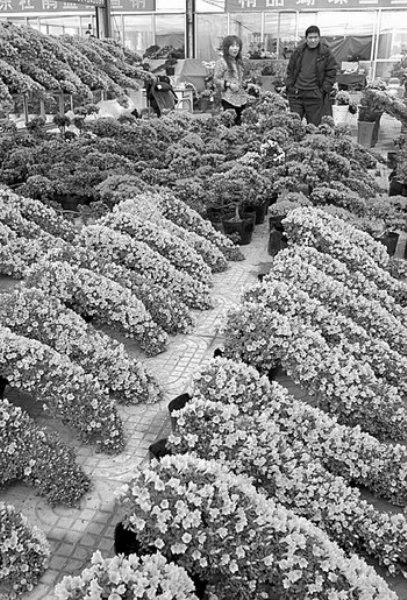 客商在山东青州花卉交易中心挑选年宵花卉。日前,为期一个月的山东青州年宵花卉节在青州花卉交易中心开场,千余家花商携上百个品种的年宵花卉亮相花卉节。 董乃德摄(新华社发)