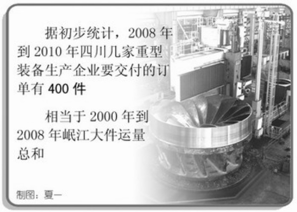 “据初步统计,2008年到2010年四川几家重型装备生产企业要交付的订单有400件,相当于2000年到2008年岷江大件运量总和。岷江目前的航运能力远远不能满足快速增长的航运需求。”潘荣伟分析说,岷江航道必须进行大规模整治。