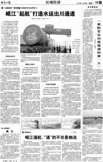 乐山大件码头以及与之配套的大件公路建成,改变了这种状态。这个大件码头虽然是为了服务三峡工程而建的,但其建成之后,人们却发现四川省内重型装备从岷江外运的需求直线上升。