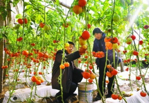 1月26日,山东省潍坊市寒亭区牛埠村村民在蔬菜大棚内采摘西红柿。年初以来,山东省潍坊市先后组织科技人员3万多人次,深入田间地头开展农业科技咨询和服务,指导种植户做好蔬菜大棚管理、加固工作,减少了恶劣天气对蔬菜生长的不利影响。 新华社记者 李紫恒摄