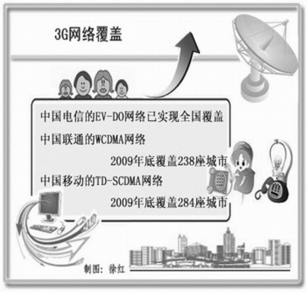 三大运营商实现了3G网络覆盖的高速扩张。其中,中国电信EV—DO网络已实现全国覆盖,中国联通的WCDMA网络和中国移动的TD—SCDMA网络于2009年底分别覆盖238座和284座城市。此外,工信部预测,3家运营商将在两年半到3年内投入4500亿元,各发展最少5000万至8000万3G用户,总共发展2.4亿3G用户。其中,4500亿元的直接投入将带动上万亿元的经济总量。