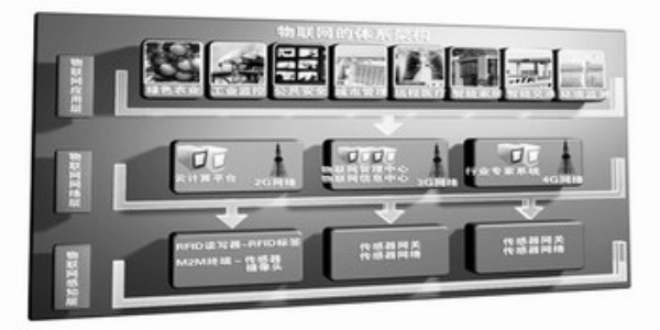 物联网本身的结构复杂,主要包括三大部分:首先是感知层,承担信息的采集,可以应用的技术包括智能卡、RFID电子标签、识别码、传感器等;其次是网络层,承担信息的传输,借用现有的无线网、移动网、固网、互联网、广电网等即可实现;第三是应用层,实现物与物之间,人与物之间的识别与感知,发挥智能作用。