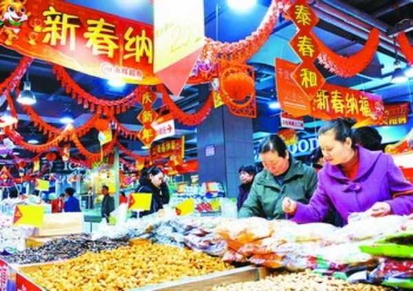1月28日,市民在福州一家超市选购年货。 春节将至,福州年货市场品种丰富,供应充足,价格平稳,呈现出购销两旺的红火景象。 新华社记者 张国俊摄