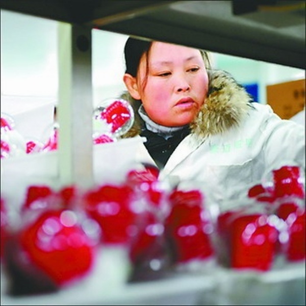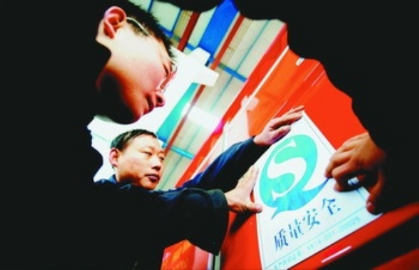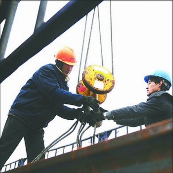 图1:江苏省建湖县三益石化机械有限公司,工人在给出口的地面防喷器控制装置设备贴质量安全标志。石油机械产业是建湖县的特色产业之一,现有企业400多家,拥有和使用专利技术200多项。严格的质量检测,是建湖石油机械在国际同类产品中成为佼佼者的重要保证。