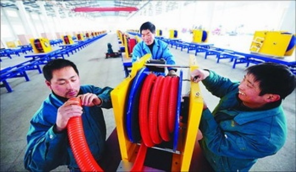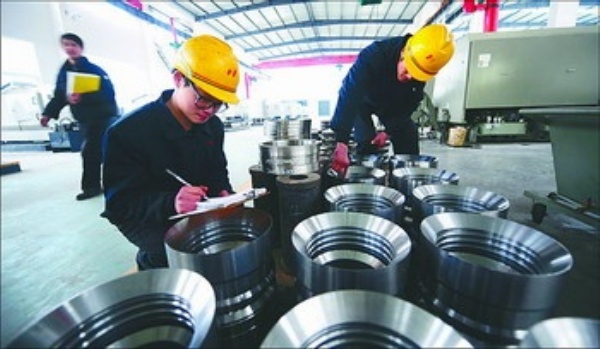 图3:建湖县亿德隆石油机械有限公司,工人正在检修设备。该县石油装备技术及水平已跻身国际先进行列,产品向高端化发展。
