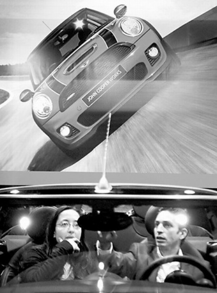 | 左图:1月20日,在第17届开罗国际汽车展上,MINI COOPER品牌的工作人员(右)为顾客介绍汽车性能。 新华社记者 张 宁摄 |