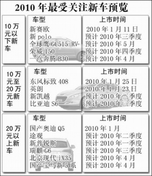 2009年,中国汽车这一年,是丰收的一年。汽车产销量超过1300万辆,居全球第一,厂商家家开足马力生产,一派繁荣景象。正是在此大背景下,各汽车厂商在眼前的车型尚不能满足市场需求的情况下,仍然腾出手来,争先投放新车,使2010年的车市显现出竞争日趋激烈的态势。