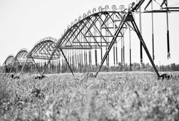 上图 内蒙古准格尔旗的高效农业示范区使用大型喷灌设备。国家实施西部大开发以来,内蒙古自治区积极筹措资金,增加农业投入,促进粮食生产发展,使内蒙古自治区成为全国五大粮食调出省区之一。