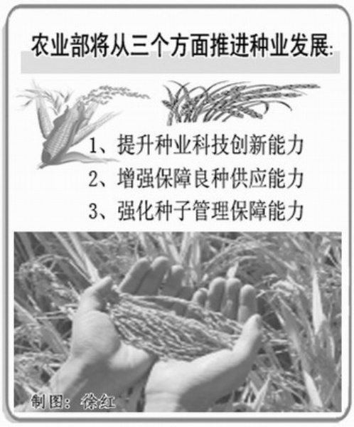据悉,推进种业发展、做大做强我国种业是一项系统工程,涉及政策、法规、机制、投入等多方面。农业部将从提升种业科技创新能力、增强保障良种供应能力、强化种子管理保障能力三个方面加以推动。