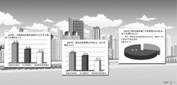 2009年商品房销售面积的增幅达到了历史最高水平。