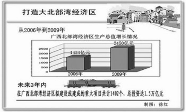广西北部湾经济区基础设施正不断完善,通往沿海的3条高速公路和沿海铁路扩能改造工程等一批重点项目陆续开工建设,总投资110亿元的两期沿海基础设施建设大会战项目进入收尾阶段。