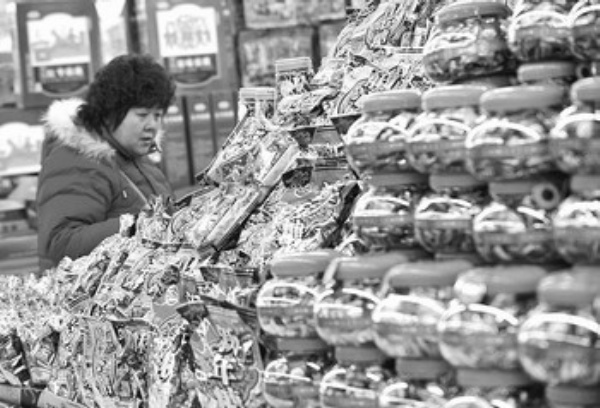 前不久,一位市民在选购年货。记者在山西省太原市部分超市及食品店了解到,虽然近期白糖等食品原料价格上扬,但是各大品牌的糖果等年货价格没有“水涨船高”。 新华社记者 范敏达摄