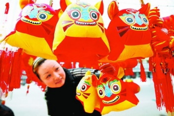 2月5日,安徽省淮北市市民在年货市场选购春节饰品。 随着新春佳节临近,各地年货市场开始升温,年画、灯笼、中国结、春联等春节饰品走俏市场。 王 文摄 (新华社发)