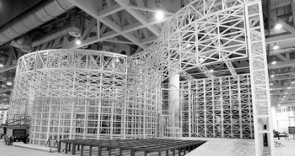 右图 2月6日,辽宁馆已经完成主体钢结构施工。 新华社记者 任 珑摄