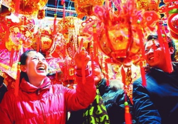 2月6日,河北省保定市裕华小商品批发市场顾客正在选购节日饰品。春节临近,节日市场消费不断升温。