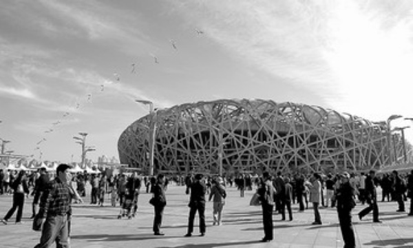 上图:“鸟巢”游人如织,成为北京旅游的新热点。奥运会对北京旅游业的积极作用不仅体现在收入上,还包含旅游观念、产业结构、国际化程度等多个方面,北京旅游站在了一个新的发展起点上。