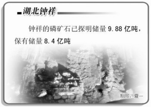 胡集镇是钟祥的磷化工重镇,该镇磷化循环经济产业园里密布着数十家磷化企业,从采选矿到磷复肥,再到精细磷化工,一个比较完整的磷化产业链正在形成。“我们关闭了年产10万吨以下的采矿企业,组建标准化、规范化的大型采矿企业,同时加强磷化产业园区建设,形成了以大峪口、鄂中化工、洋丰中磷、世龙化工、楚兴化工等为骨干的磷化工产业集群。预计2010年,磷化工产业销售收入将达到140亿元。”马朝晖说。