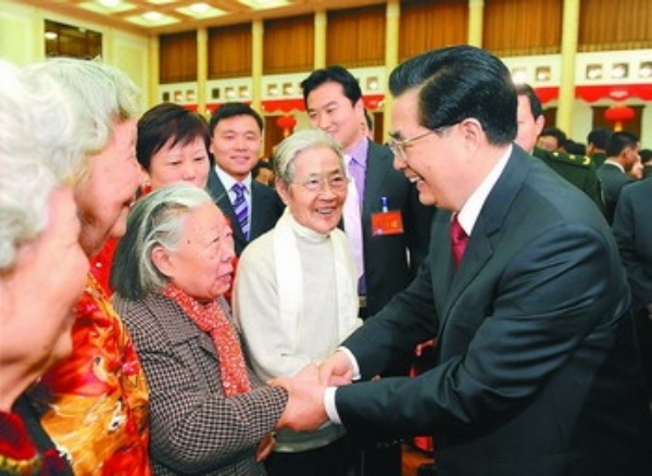 团拜会上,胡锦涛等中央领导同志与大家亲切握手,互致新春问候。