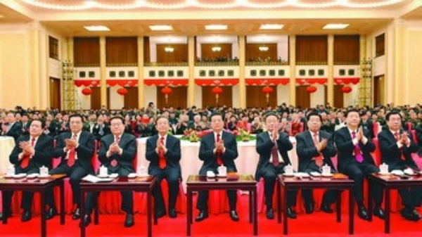下图:2月12日,中共中央、国务院在北京人民大会堂举行2010年春节团拜会。党和国家领导人胡锦涛、吴邦国、温家宝、贾庆林、李长春、习近平、李克强、贺国强、周永康等同首都各界人士欢聚一堂,共贺新春佳节。