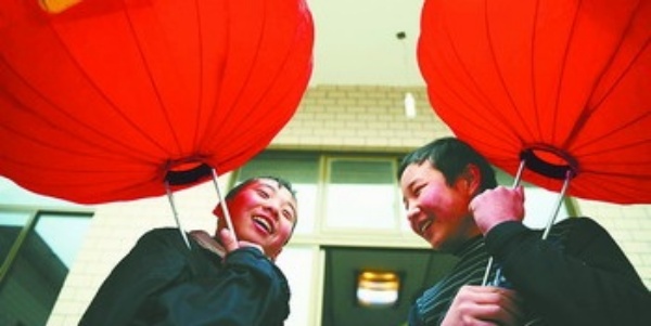 下图 2月12日,河北保定狼牙山脚下石家庄村的两位小朋友在家门口挂起大红灯笼,喜迎春节。