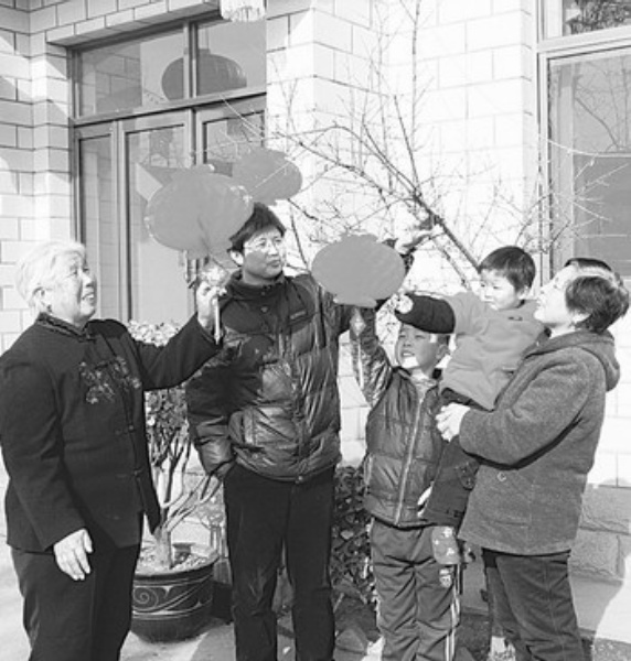 在韩花珍家的院落中,记者与他们一家一起挂灯笼、贴窗花、拉家常。韩花珍告诉记者:“现在的政策好,党和政府关心着我们老百姓的生活,种地有补贴,看病有医保,让我们农民的生活越过越幸福。我们家还办起了家庭旅馆。你看我已经75岁,看电视眼不花,听广播耳不背。我要趁着大好的年景好好享一享福。”