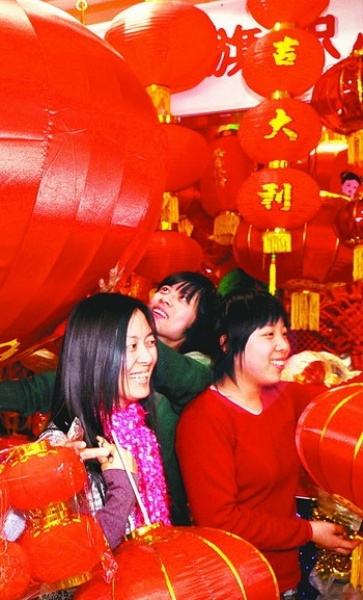 上图:春节期间,北京天意新商城各种节日商品供应充足,喜庆热闹。 本报记者 李树贵摄