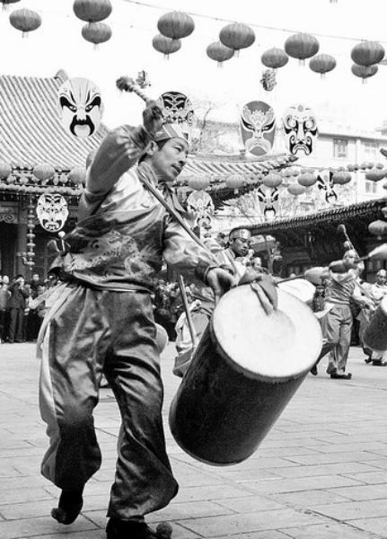 2月18日,兰州张掖路城隍庙人头攒动、锣鼓喧天,演员在庙会上进行太平鼓表演。