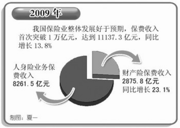 2009年,虽然受到国际金融危机的冲击,但保险行业战胜了种种困难,全力服务“保增长、保民生、保稳定”,充分发挥了保险“经济助推器”的作用。从2009年的行业数据中可看到,与经济发展密切相关的农业保险、出口信用保险、工程保险等险种保费收入大幅增长,同比分别上涨了21%、91.3%和31.6%。短期出口信用险累计承保额902.7亿美元,同比增长122.6%,超额完成国务院部署的840亿美元承保任务;农业保险保费收入133.9亿元,参保农户1.33亿户,同比增长48%。截至2009年底,小额保险保费收入2.3亿元,为871万人提供风险保障1364亿元。今年,保险业将按照拓宽领域、增强功能、优化结构、改善服务的要求,不断探索创新,进一步提高服务经济社会发展全局的能力和水平。