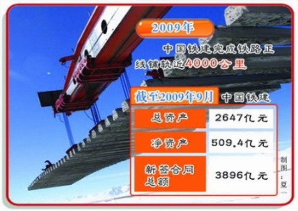 在国家的4万亿元投资计划中,中国铁建在铁路招标中中标总额位居行业第一,2009年完成铁路正线铺轨近4000公里。基础设施建设的投入,极大地拉动了内需的增长。除了带动钢铁、水泥需求和劳务需求的增长,基建工程还带来了大量农副产品、服务业等方面的需求。