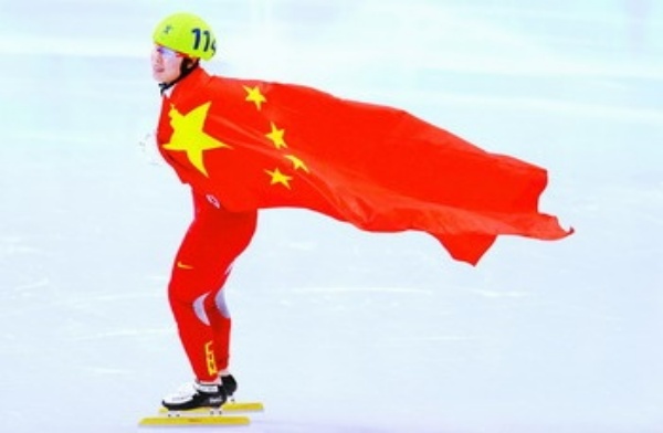 上图 2月20日,在温哥华冬奥会上,中国选手周洋获得短道速滑女子1500米冠军。这是周洋在比赛获胜后庆祝。